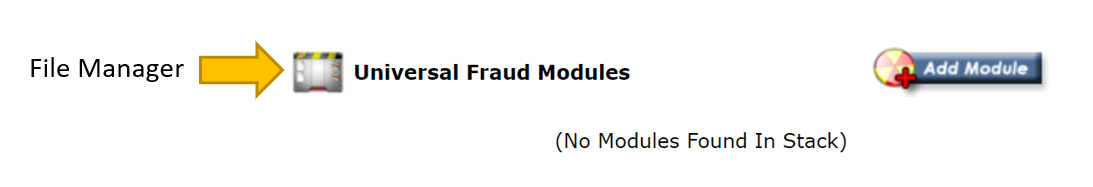 A new window will appear with the possibility of having one or multiple file managers to add a fraud module. The top file manager will be named Universal Fraud Modules. This file manager will blanket the fraud module settings across the gateway account.