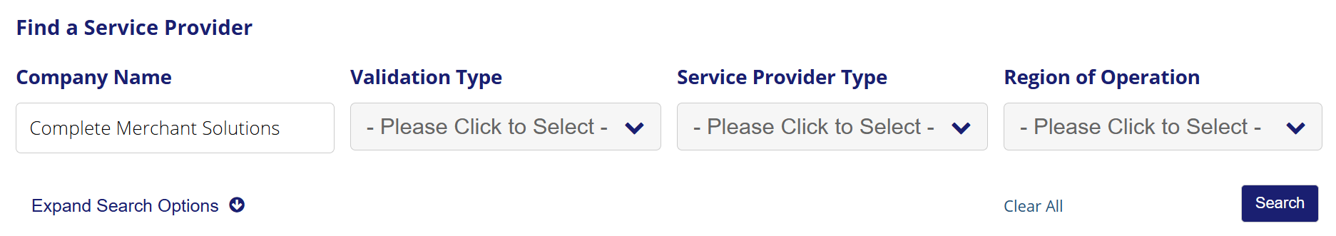 Once there, add "Complete Merchant Solutions" under the Company Name and select search.